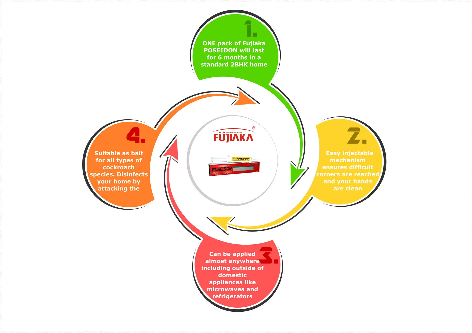 - Made in Korea. If earlier pest-control has failed for you, try our latest molecule product Fujiaka POSEIDON Anti Roach Gel